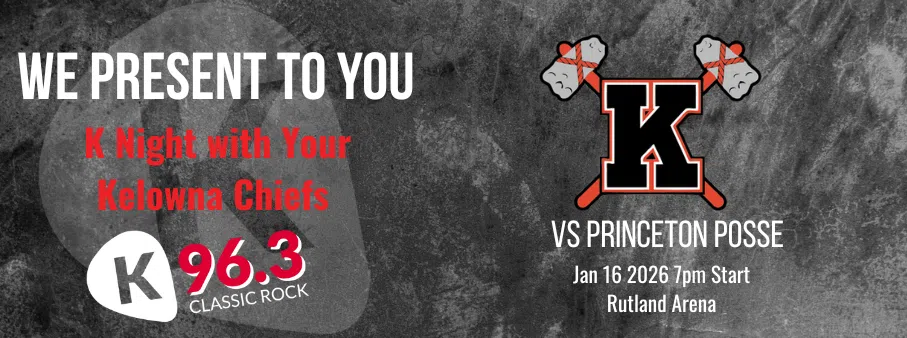 K Night with your Kelowna Chiefs is back for one NIGHT ONLY! Join Brad + Alysha while they bring their Shenanigans to the Rutland Arena Jan 16th 2026 as we take on Princeton! There will be giveaways, contest and more!